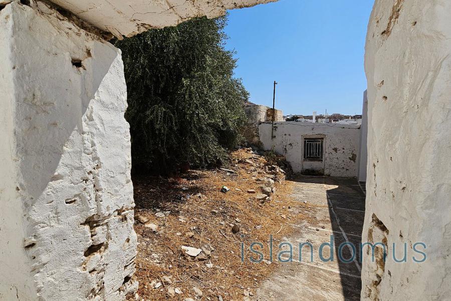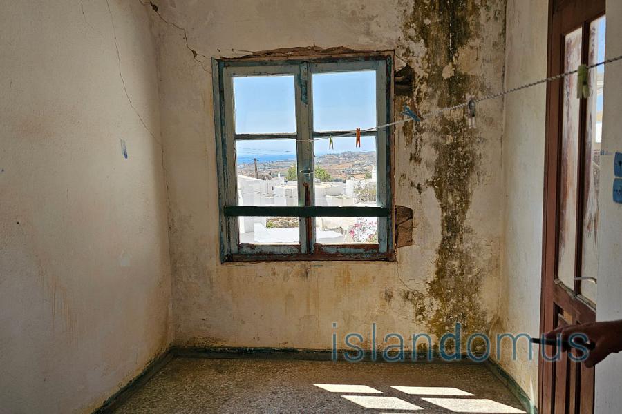 Près des deux belles places, dans le village traditionnel de Marpissa, une vieille maison cycladique est à vendre.