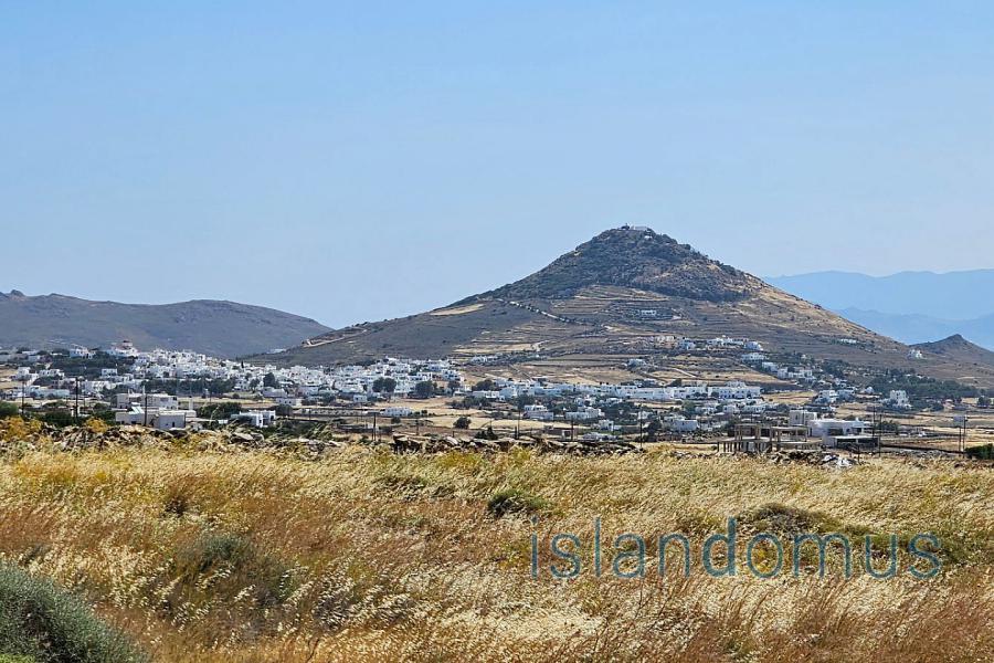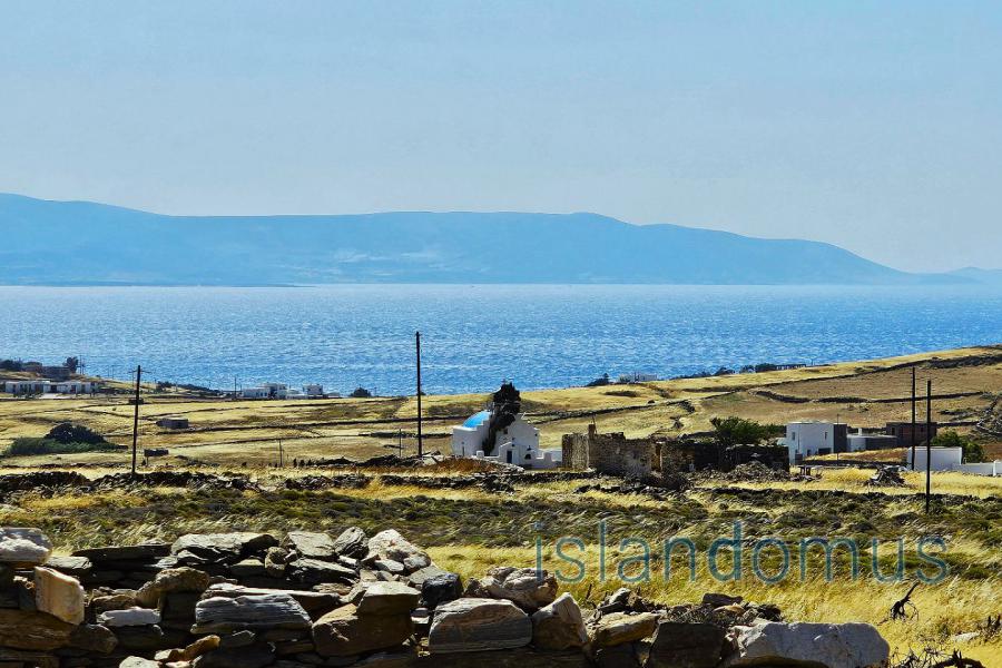 Elle est située sur une pente douce, elle est légèrement inclinée, avec une vue panoramique dégagée.Le bleu de la mer Égée, les collines de Kefalos et Antikefalos, les îles voisines de Naxos et Heraklia, ainsi que l'arrière-pays spécial de l'île créent le décor ultime des Cyclades.